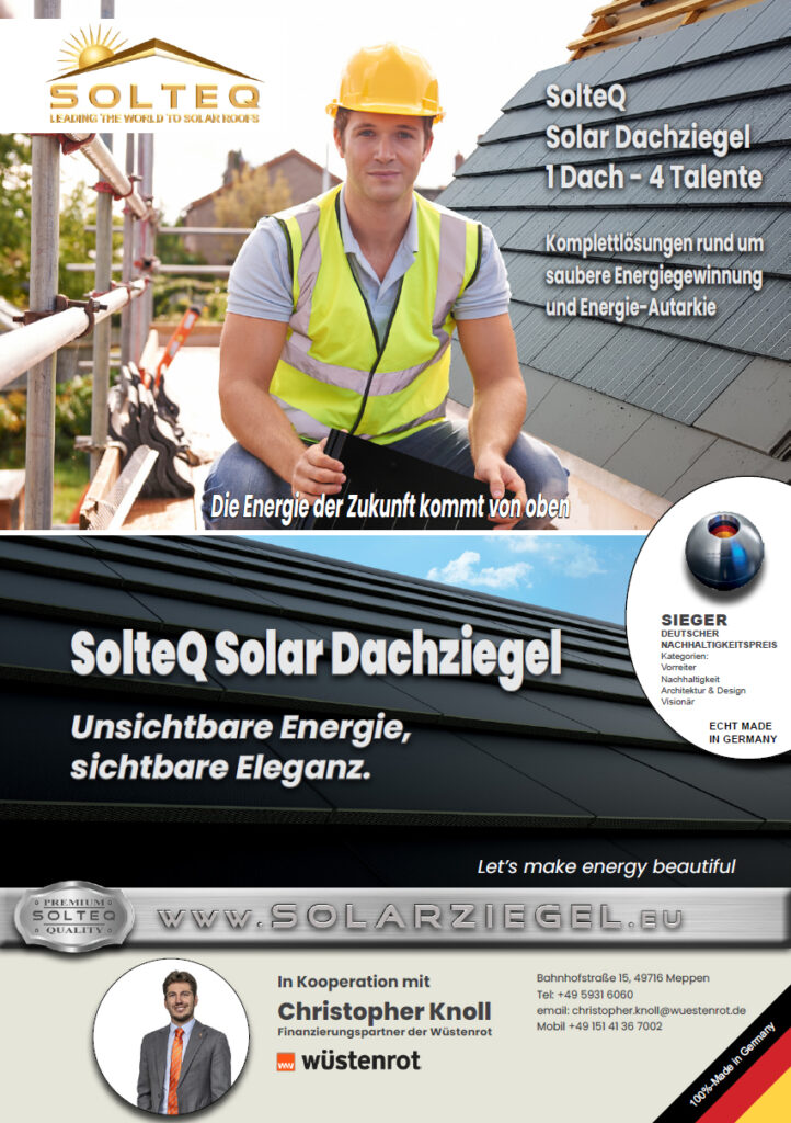 👉 Ihr Vorteil: Tauschen Sie Ihre aktuellen Strom- und Heizkosten gegen ein SolteQ-Solardach – und zahlen Sie beispielsweise nur 98 € monatlich für ein komplettes, modernes Dach.